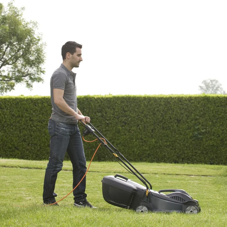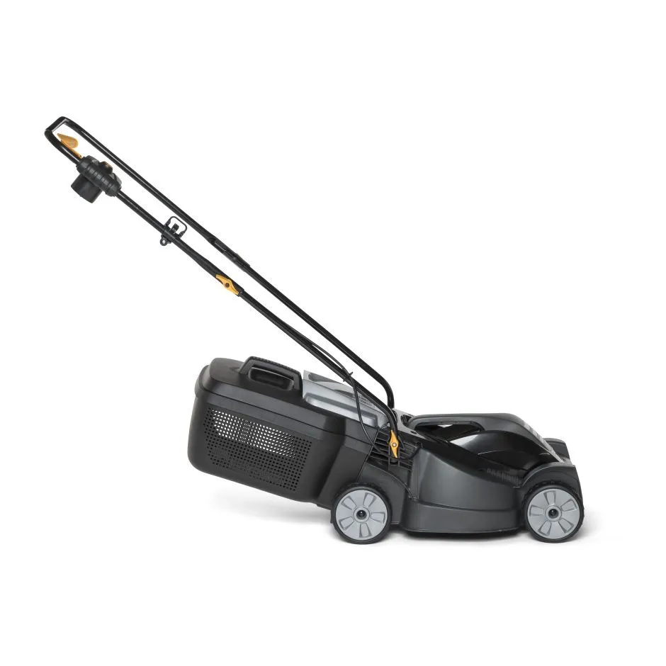 Корпус выполнен из ABS-пластика, который характеризуется высокой прочностью. Скошенная трава попадает в травосборник объёмом 25 литров. Высота скашивания меняется в диапазоне от 25 до 65 мм. Ширина захвата составляет 32 см. Косилка легка в обслуживании и проста в управлении. Удобное хранение обеспечивает складная рукоятка.