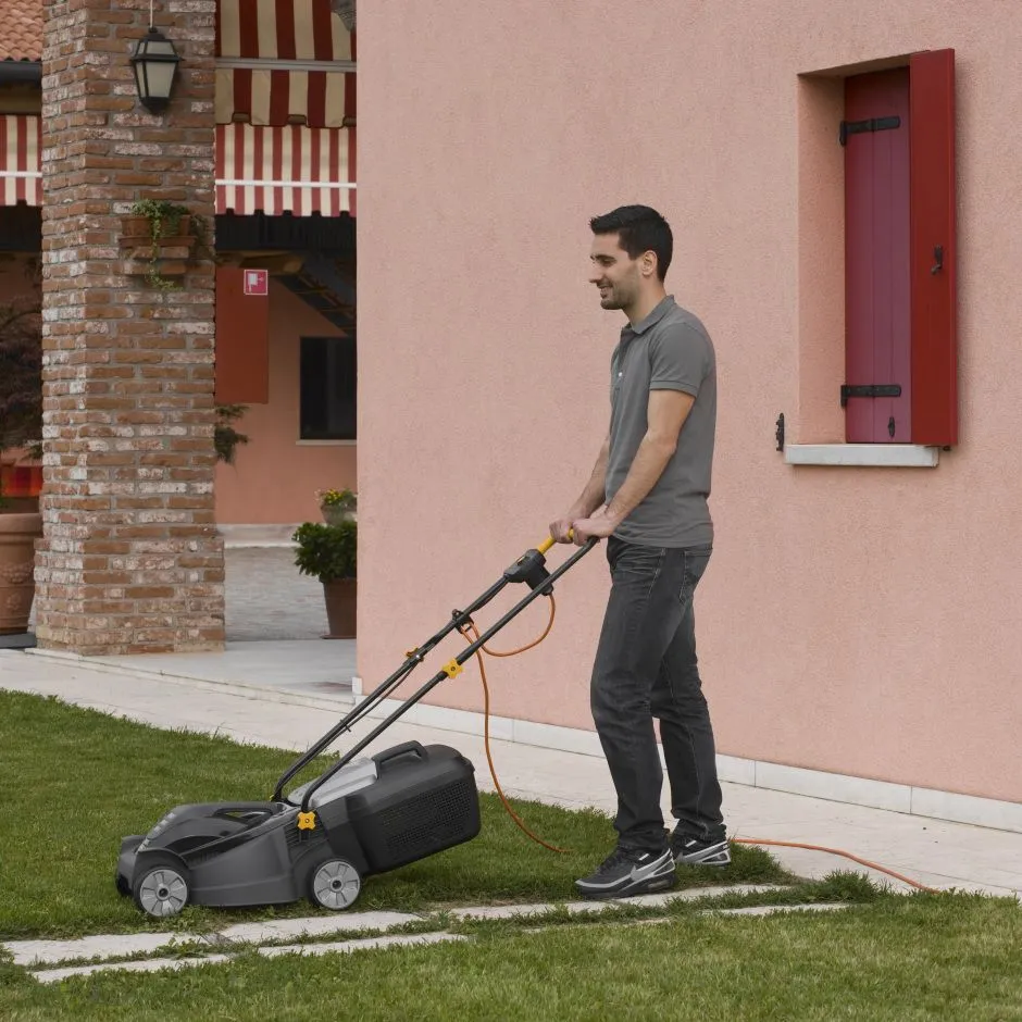 Электрическая газонокосилка Alpina BL 320E отличается небольшим весом и габаритами. Используется на площадях до 300 кв.м. Над двигателем предусмотрена ручка для удобства переноски.