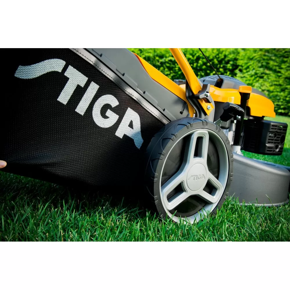 Самоходная бензиновая газонокосилка STIGA Combi 53 S с мульчированием оснащена двигателем STIGA ST 170 OHV. Эта модель имеет 6 уровней стрижки, позволяющих регулировать высоту среза травы от 22 до 80 мм, что делает её подходящей для различных типов газонов.