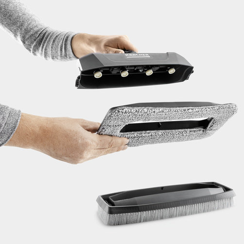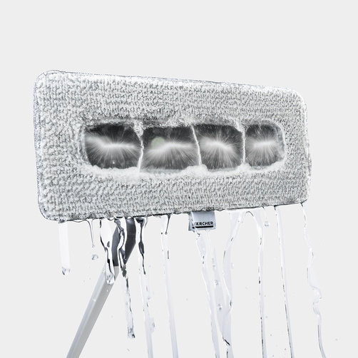 Для мойки стеклянных поверхностей (например, зимних садов) подходит рамка с падом из микроволокна, который закрепляется липучкой. Его абразивные волокна способствуют лучшему отделению грязи и гарантируют бережную очистку.