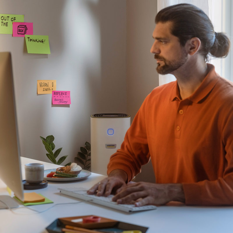 Компактный воздухоочиститель для небольших помещений, детских комнат или отдельных рабочих мест площадью 20 м2. Модель Karcher AF 20, оснащённая системой многократной фильтрации, очищает воздух в них от аллергенов, вредных веществ и возбудителей болезней. Эффективность фильтрации частиц размером 0,3 мкм составляет 99,95%.