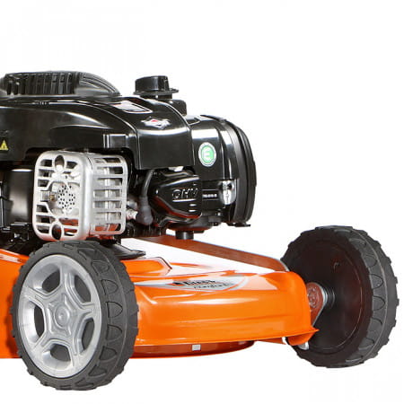 Двигатель Briggs&Stratton 550E SERIES™ характеризуется легким запуском, низким уровнем шума и вибрации. Вместительный контейнер для сбора травы увеличивает интервалы между опустошениями. Колеса гарантируют хорошее сцепление с поверхностью. Высота стрижки регулируется при помощи рычага в диапазоне 28-75 мм.