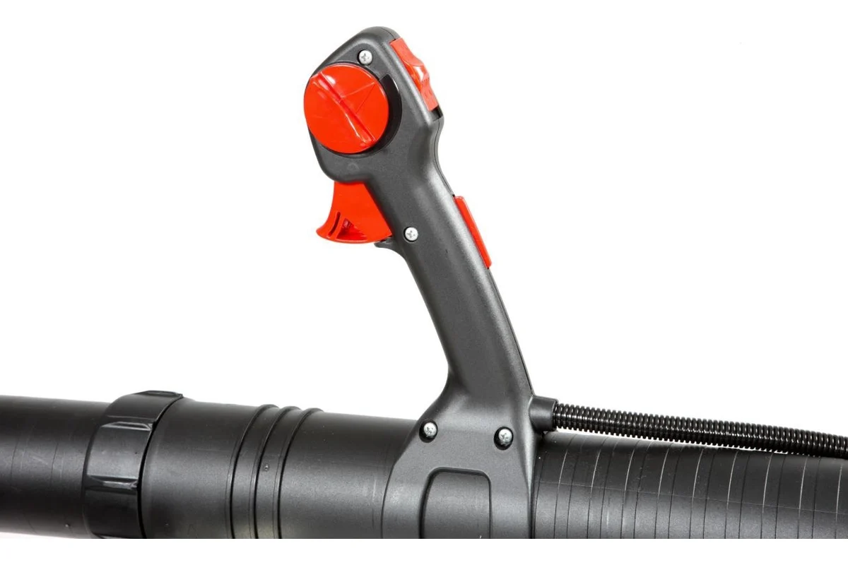Рукоятка управления удобно располагается на нагнетательной трубе и регулируется под длину руки оператора. Все элементы управлеиня находятся непосредственно на рукоятке: курок газа, стоп двигателя, круиз-контроль.